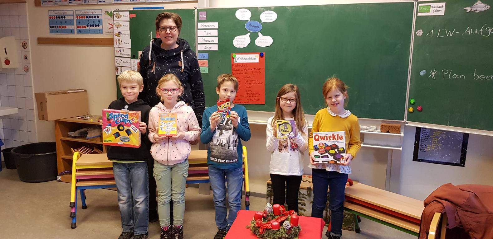 2019 12 20 Übergabe Spiele 2a 3Die Zweitklässler der Franziskus-Schule am Standort Hopsten hatten am letzten Schultag vor den Weihnachtsferien (20.12.2019) noch einmal allen Grund zur Freude.